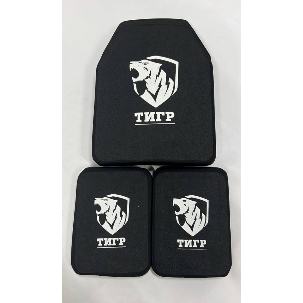 Передняя и задняя бронепластины выполнены из керамической пластины из оксида алюминия, содержащей 67% керамики, в сочетании с высокомолекулярным полиэтиленом. Размер каждой основной бронепластины составляет 22х250х300 мм, а их вес равен 2,82 кг каждая. Эти бронепластины обеспечивают надежную защиту важных зон тела.